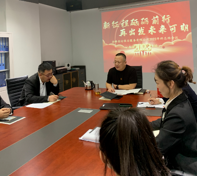 歲序更替,華章履新。2023年1月18日上午,赤峰創(chuàng)安保安服務(wù)有限公召開(kāi)了2022年年終總結(jié)大會(huì),會(huì)議由辦公室主任主持,公司總經(jīng)理、副總經(jīng)理出席會(huì)議,創(chuàng)安保安公司全體員工參加會(huì)議。